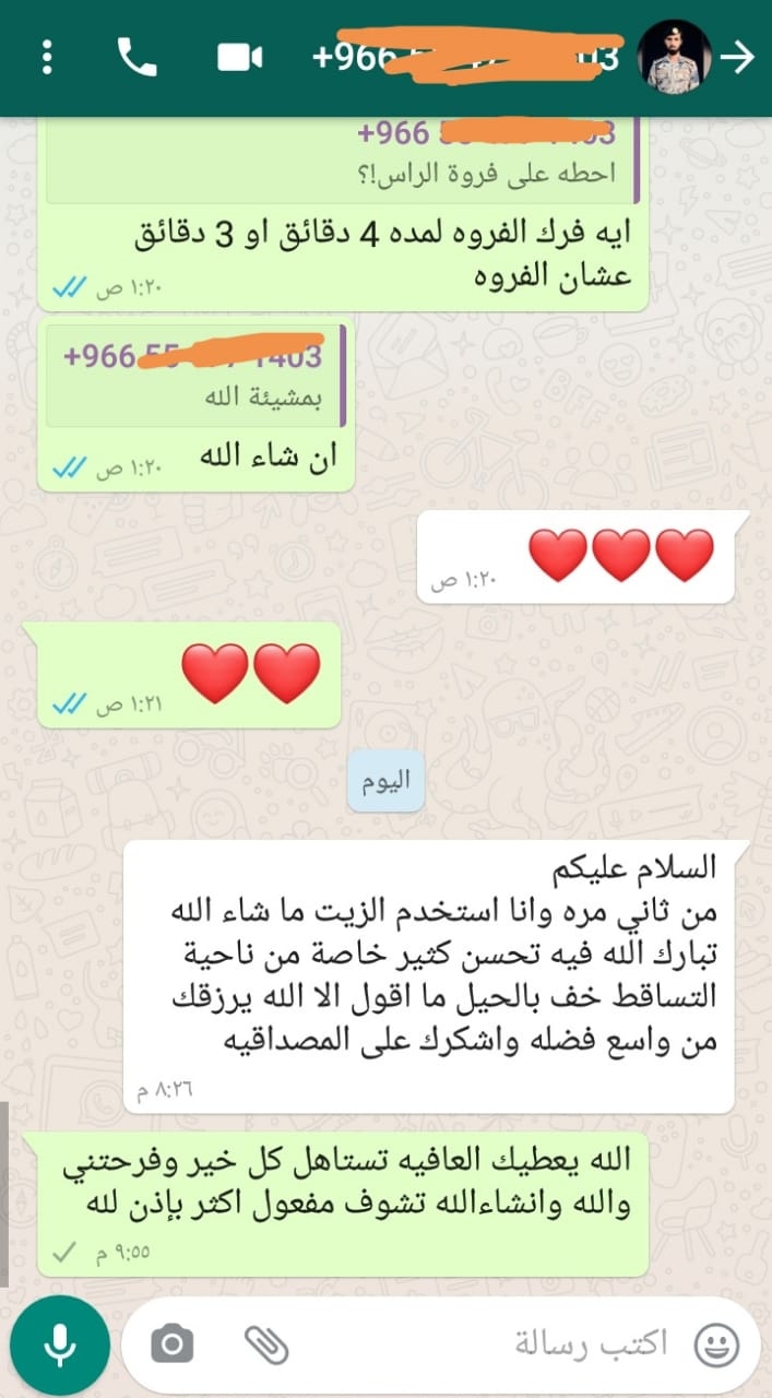ويقعد الزيت 4 ساعات او ست ساعات بعدين اغسله بالماء العادي.